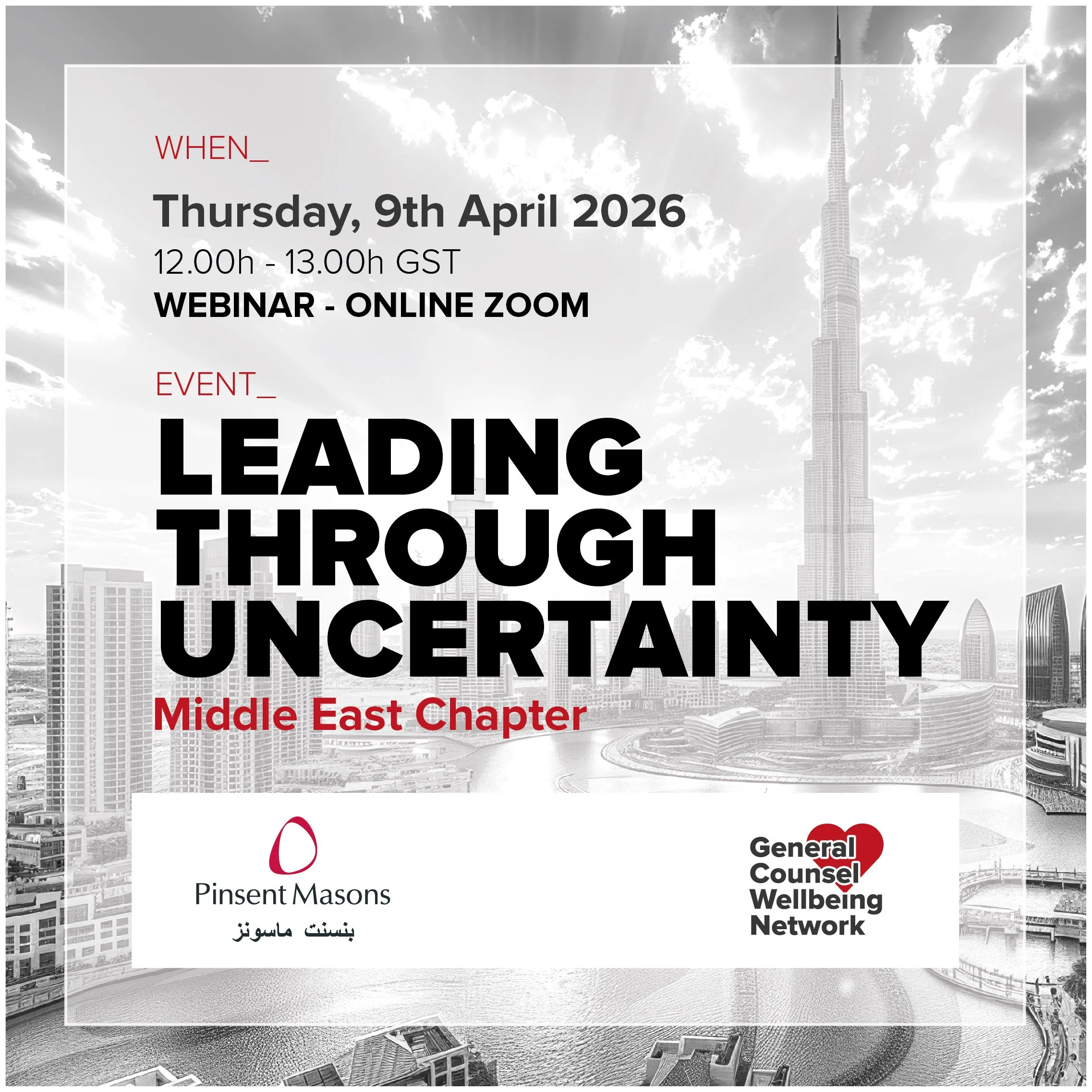In a period marked by ongoing regional tension and uncertainty, senior in-house leaders are being asked to operate with limited visibility, heightened pressure, and a constant flow of “unknown unknowns.” This session explores how such conditions impact the nervous system, decision-making, and leadership presence, and what it takes to remain clear, steady, and effective in the face of ambiguity. This will be a valuable opportunity to connect with fellow Middle East senior in-house counsel navigating similar challenges, reinforcing the strength of the community in times of uncertainty.